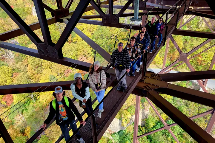 Explore the catwalk under the New River Gorge Bridge on this guided walking tour with Bridge Walk! Have the walk of your life as you enjoy incredible views of West Virginia’s natural landscapes and beauty, learn about the history of the New River Gorge Bridge and the area. Our guests take numerous photos throughout the tour. Our knowledgeable guides are friendly and focused on your safety and ensuring you’re having a wonderful and exhilarating experience on this three-hour adventure.